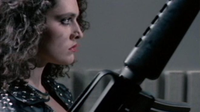 Scenele n-au însă prea multe legături între ele: pe ecran se succed urmăriri, împușcături, sute de oameni sunt secerați cu mitralierele, sângele curge în valuri, elicoptere și mașini explodează, manechine sunt dezmembrate. Urmând tema filmului – „She mates … then she terminates” -, doamna în cauză se împreunează cu diverși cetățeni, punkiști, vagabonzi, ospătari, până ce respectivii mor din cauze obscure, stropiți cu sânge. Ea, a naibii, nu poate fi răpusă nici de glonț, nici de foc, nici de bazooka, nici de taxe, nici de curentul electric.