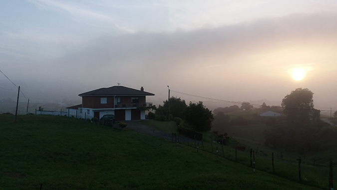 Pentru mine, Santillana e totuși ca și cum ai admira un bizon împăiat într-un muzeu: în ciuda valurilor de turiști, îi lipsește lucrul cel mai important – viața. Dantelăriile ei din piatră se văd cel mai bine înaintea răsăritului, când turiștii dorm și te îndrepți către unul dintre locurile mele favorite de pe Camino del Norte. Următoarele sate se numesc Arroyo (pârâu) și are vreo 50 de locuitori: o vale verde, cu case din piatră, deasupra căreia stăruia o lumină ireală, ce părea că nu voia să coboare până la suprafața pământului, să nu strice acea compoziție, după care intri în Oreña, cu biserica și cimitirul ei în care adormiții stau ca-n niște rafturi.