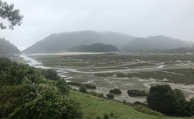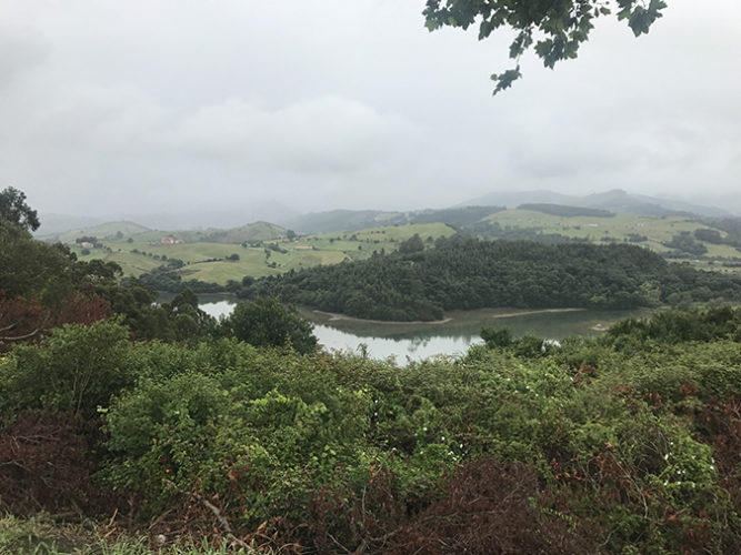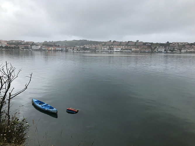 Plecând din Comillas, treci prin Parcul Natural Oyambre, care cuprinde estuarele râurilor San Vicente și Rabia, un paradis pentru diverse specii de cormorani, pescăruși și rațe. Te înalți deasura lumii, trăgând pe nări mirosul aspru al munților și pe cel sărat al mării care se retrage, lăsând în urmă coviltire de ceață și trupuri țepene de bărci pe nisipul ud dezgolit, treci de biserica Santa Marina, pe turla căreia crește un copăcel și lângă care au tras, ca un covor, un teren de golf pentru cei bogați, îți pui pelerina de ploaie și, prin ploaia din ce în ce mai deasă, mergi mai departe.