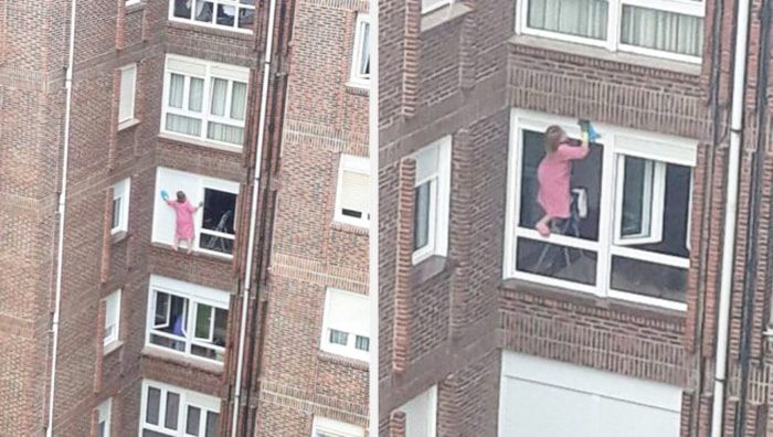 7. Așa spală o doamnă ferestrele pe exterior la etajul al patrulea, în Santander.