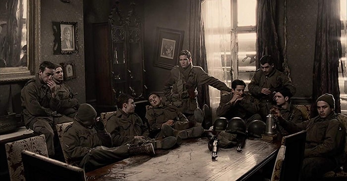 10. Band of Brothers (2001). Da, e o producție mai cunoscută, dar nu putem vorbi despre filme de război fără să-l amintim. Ani la rând, această producție HBO a avut punctajul maxim al unei serii pe imdb.com (9,5), până ce a fost egalată de The Godfather Saga, Breaking Bad și Chernobyl. Band of Brothers e produs de către Steven Spielberg și Tom Hanks, ca un fel de prelungire a filmului Saving Private Ryan, despre o companie de soldați americani care luptă în cel de-al doilea război mondial.